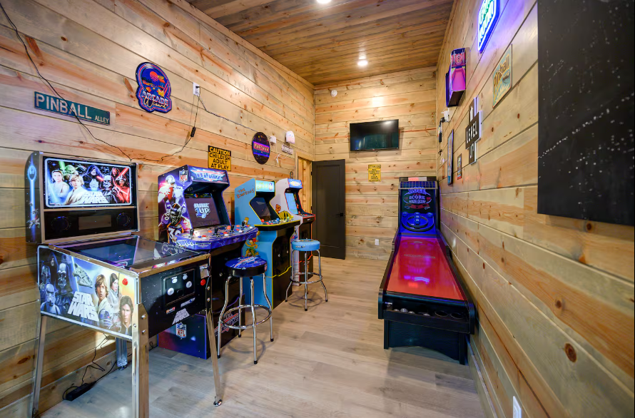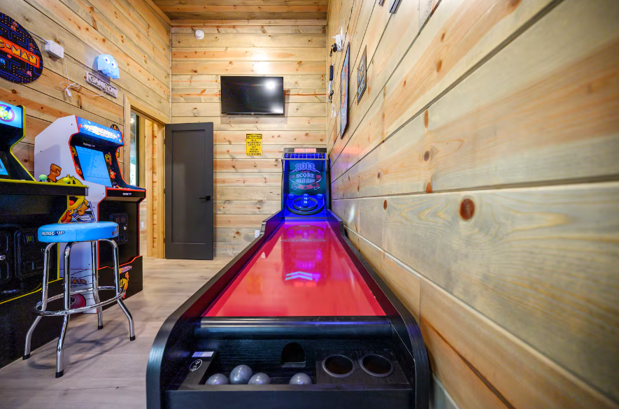 • Epic indoor game room with vintage arcade, skee ball & shuffleboard