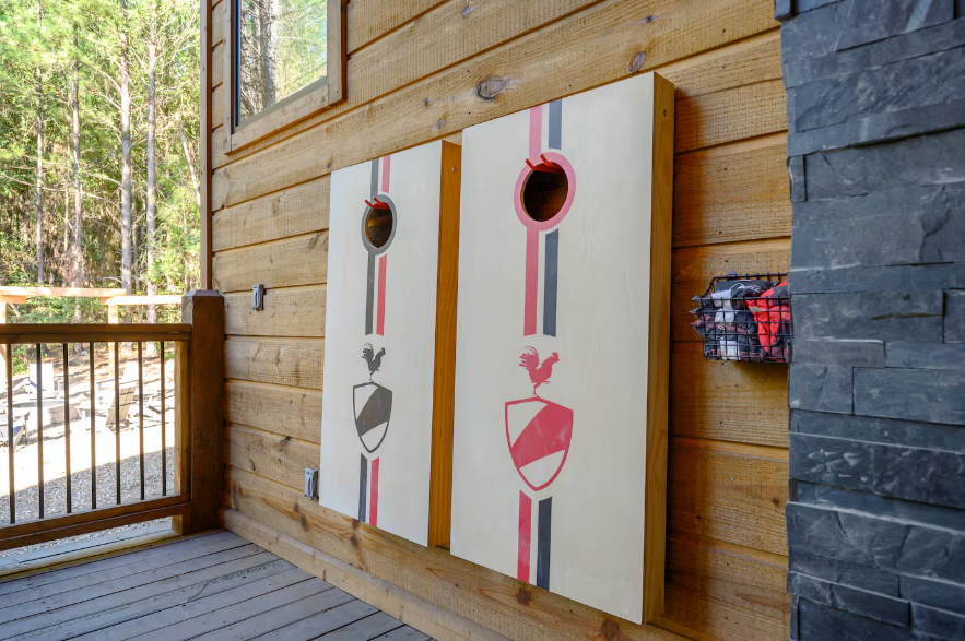 The Liv N Love cabin rental is perfect. Lighted half basketball court for family fun.
