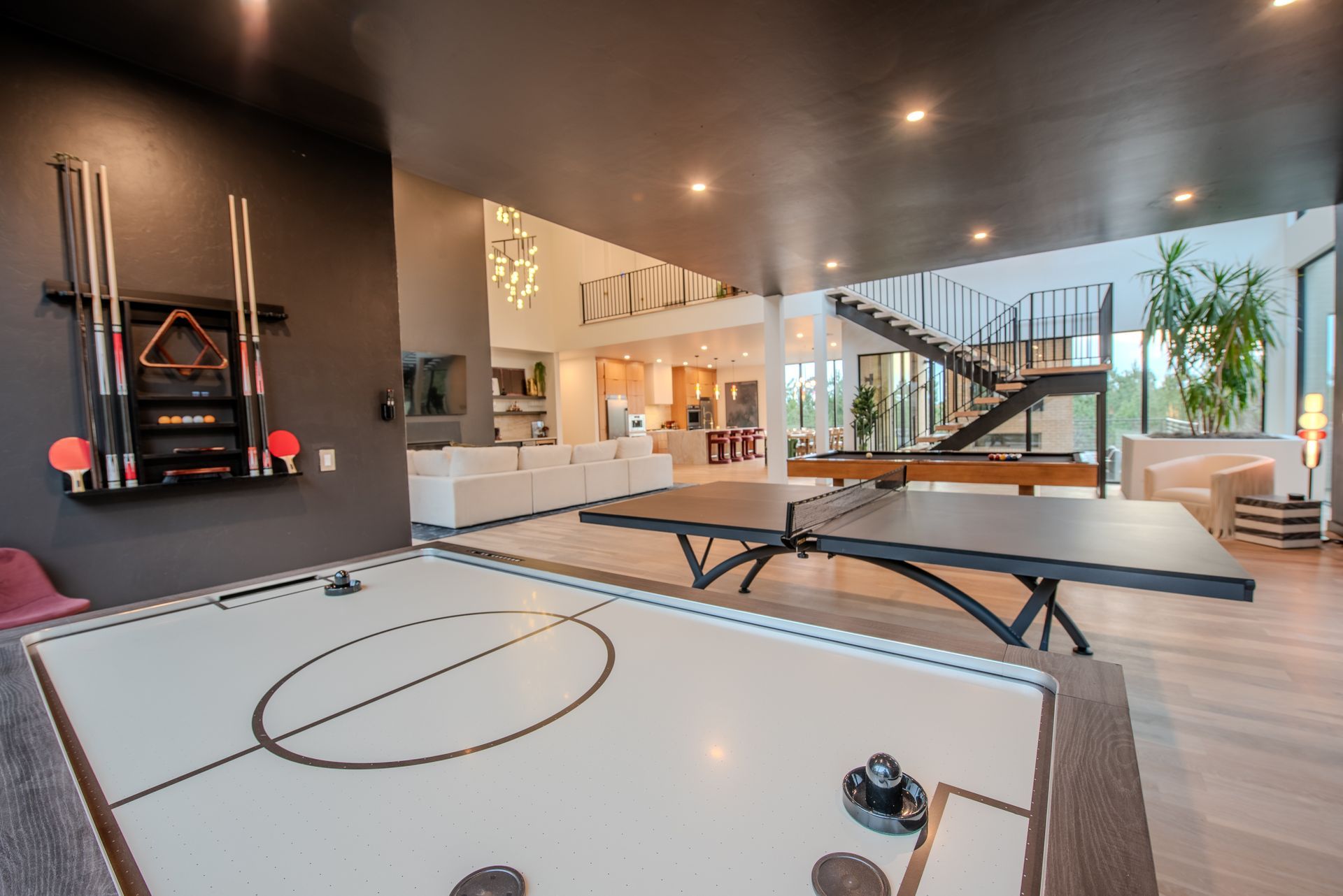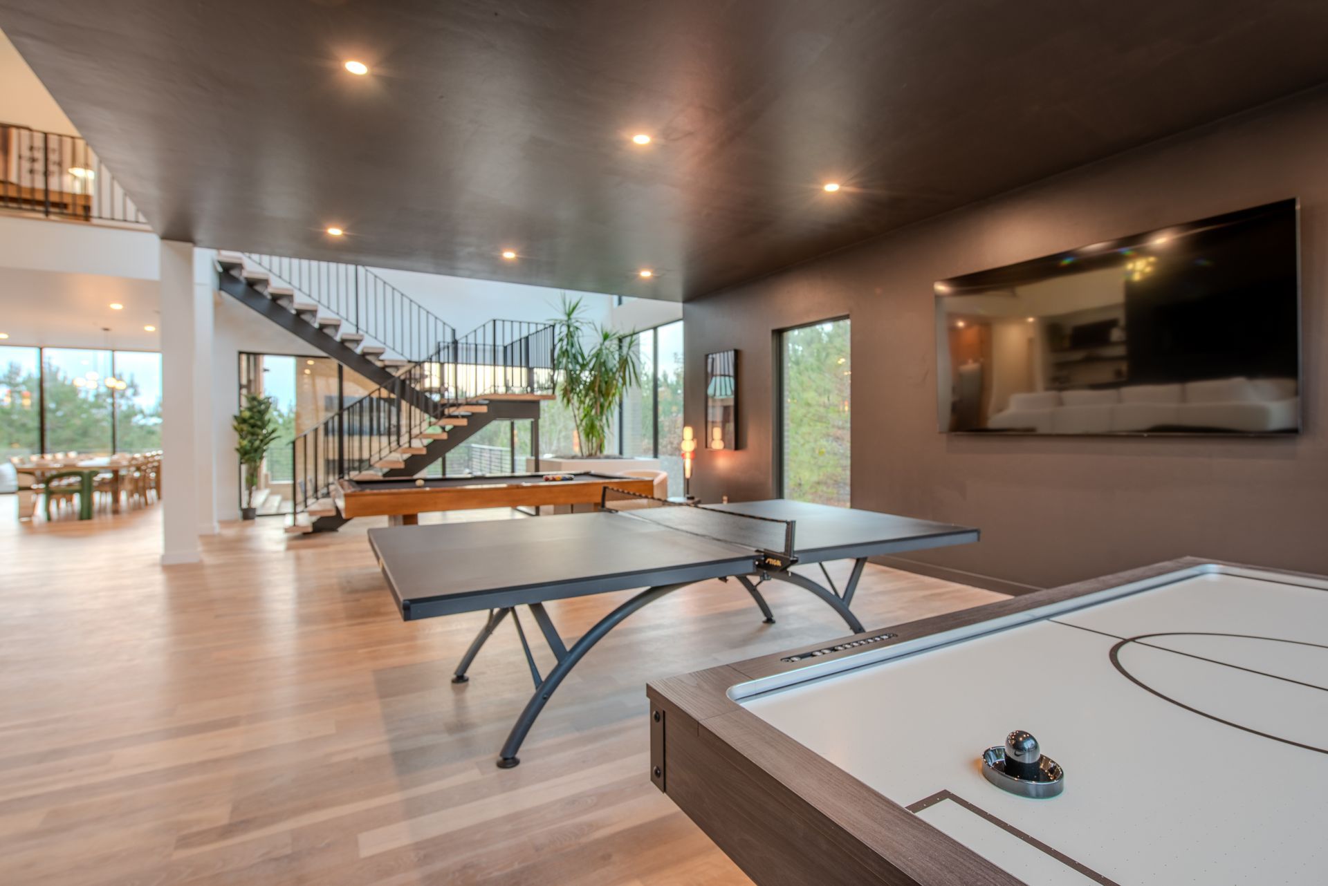 Pool table, air hockey, and ping pong — something for everyone.