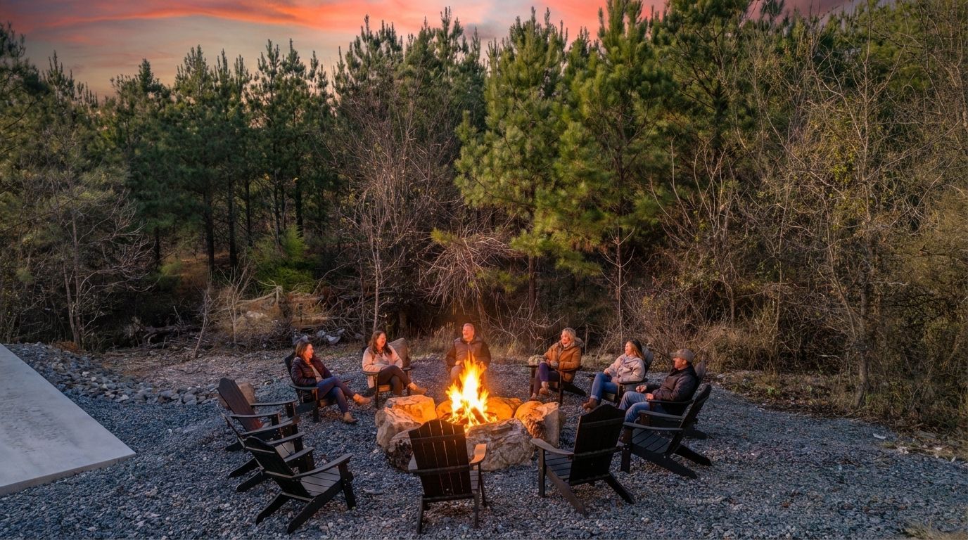 • Outdoor fire-pit area with seating — cozy up around the fire for s’mores, storytelling, or stargazing in the forested quiet.