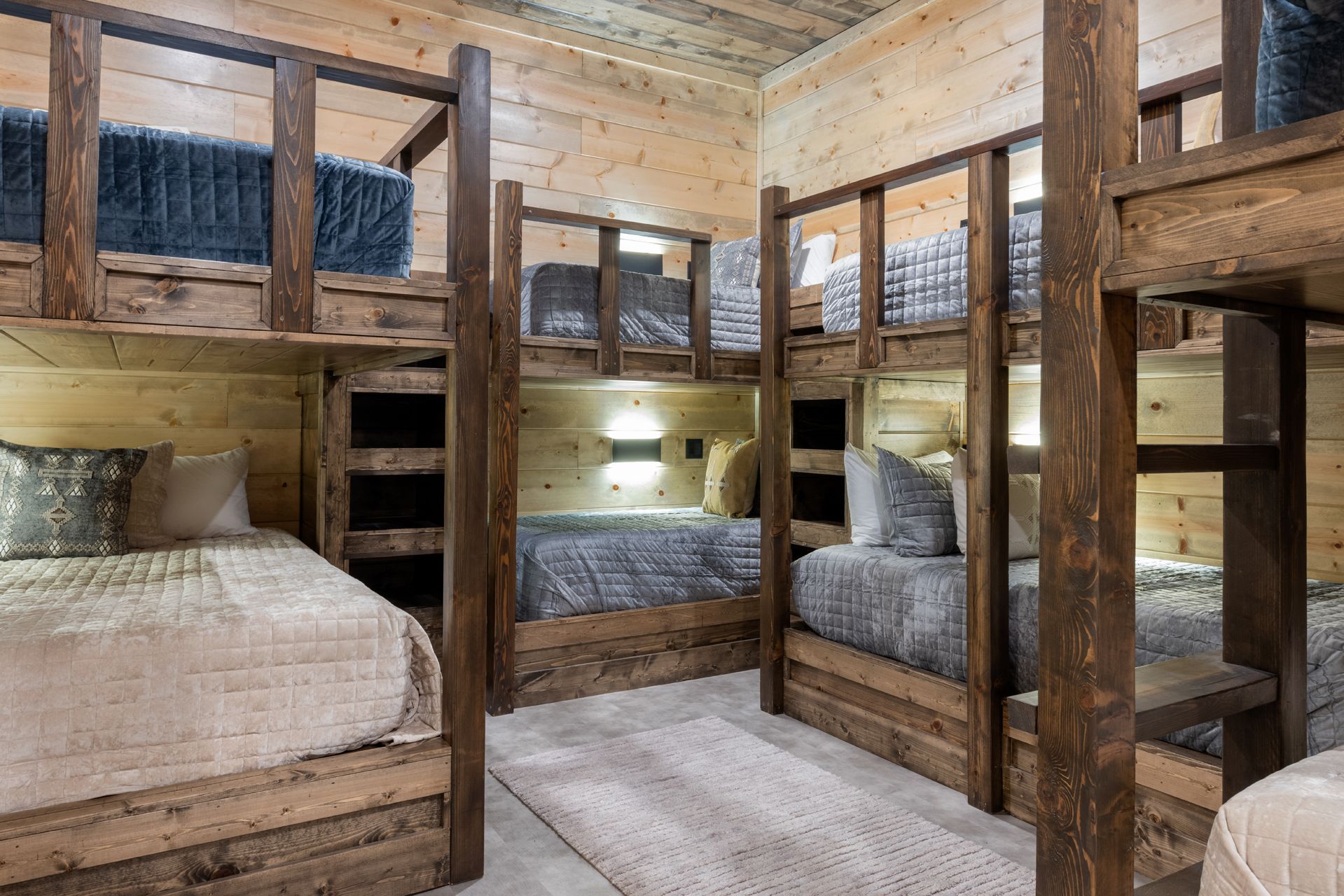 • Bunk Room: Sleeps 12 (4 queens + 4 twins), ensuite bath—kids' favorite