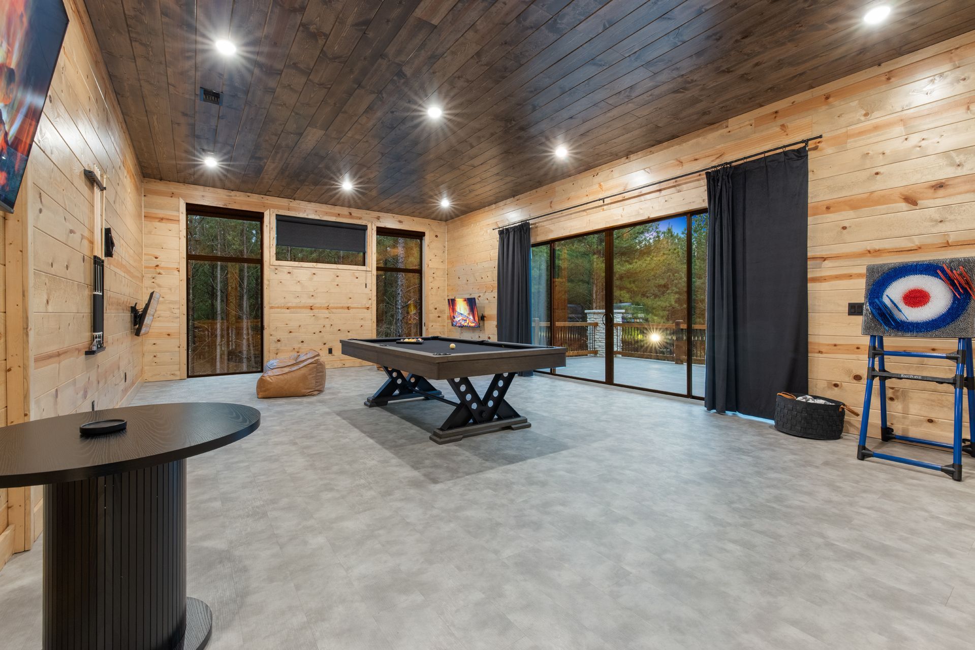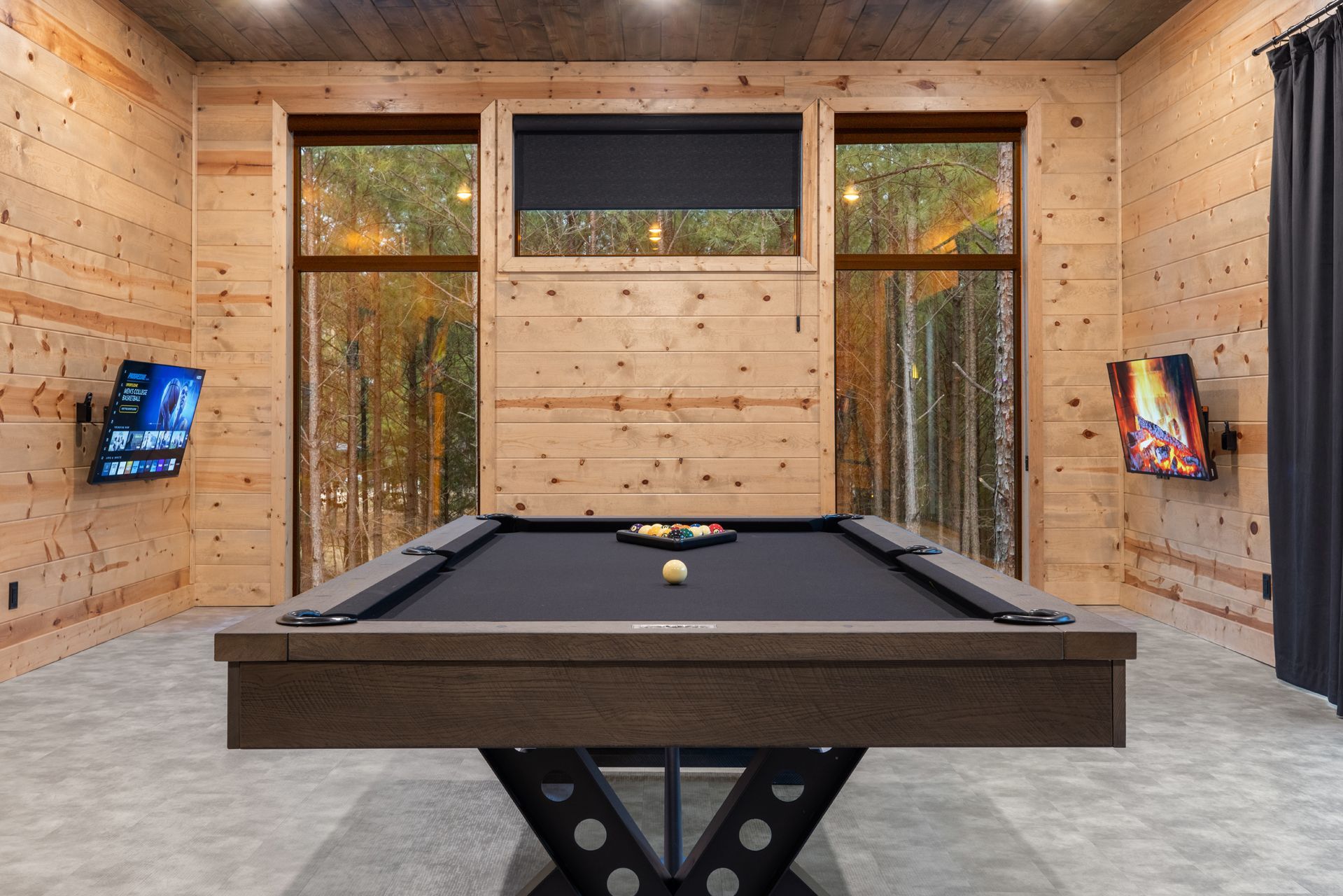• Dual game rooms across two floors: pool, poker, shuffleboard, axe throwing