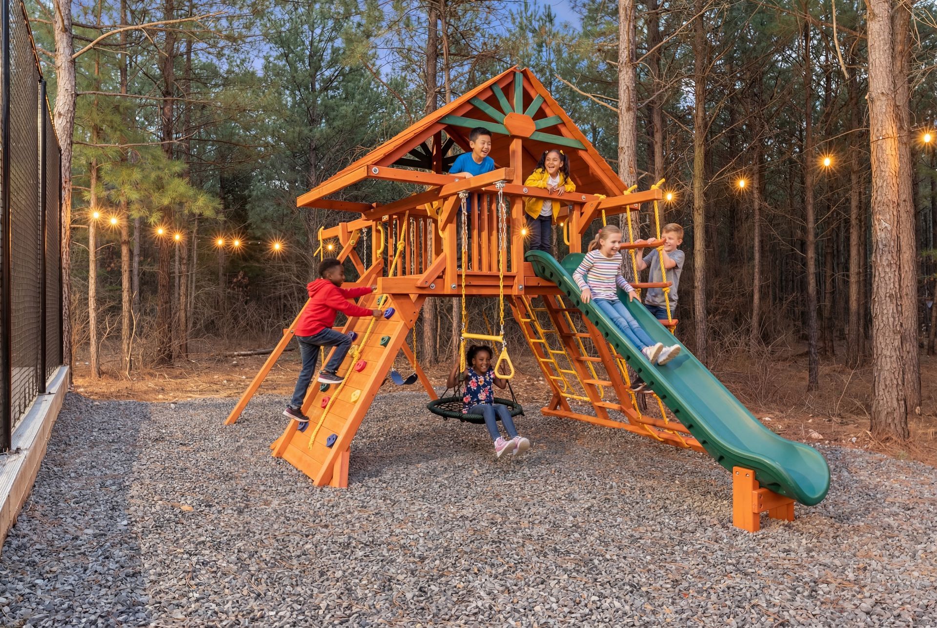The Liv N Love cabin rental is perfect. Lighted half basketball court for family fun.